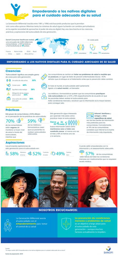 Para obtener los datos se entrevistó a 3,200 personas millennials, nacidos entre 1981 y 1996, consumidores, médicos generales y farmacéuticos en ocho países del mundo.