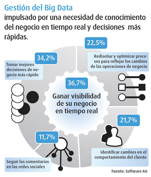 De acuerdo a Tata Consultancy Services en el 2013 encontró que Latinoamérica es la segunda región en el mundo con la mayor adopción de iniciativas de Big Data después de los Estados Unidos. De ahí la mayoría son empresas Mexicanas las que han logrado desarrollar e integrar plataformas de análisis masivo de datos.