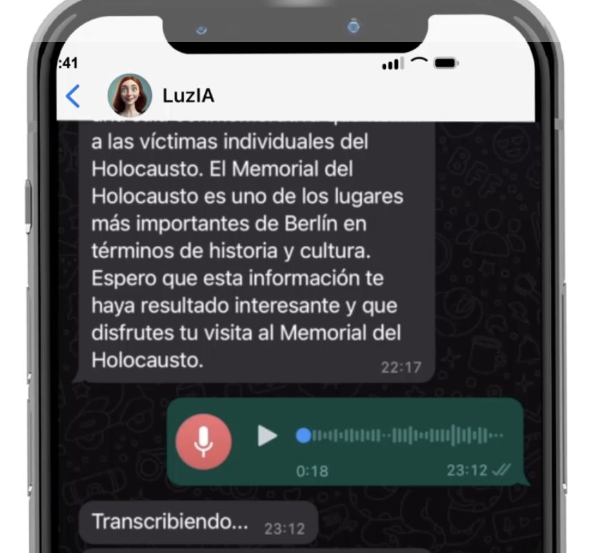 Luzia, es una Inteligencia Artificial que de momento es gratuita y te permite, con solo añadirla a WhatsApp o Telegram transcribir todos los audios que recibas e incluso ayudarte con alguna actividad extra que desees realizar.