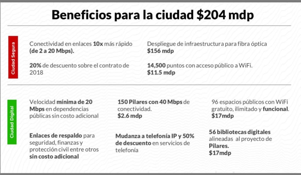 Con un ahorro total de 307 millones de pesos, además se mejoraría la conexión de todas las cámaras de postes y la promesa es que aumentará la calidad de la información que recibe el C5 (Centro de Comando, Control, Cómputo, Comunicaciones y Contacto Ciudadano de la Ciudad de México.