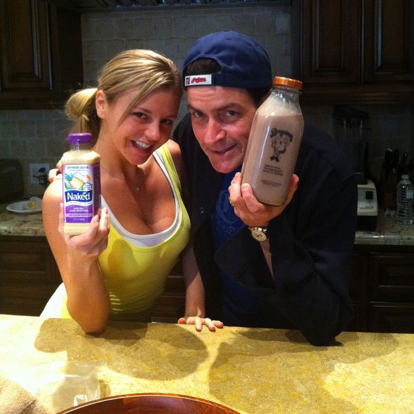 Sheen en su primer Tweet publico «¡Ganando!… Elige tu vicio» y posteriormente una foto suya al lado de una modelo presentando una bebida de chocolate con la leyenda «Naked».