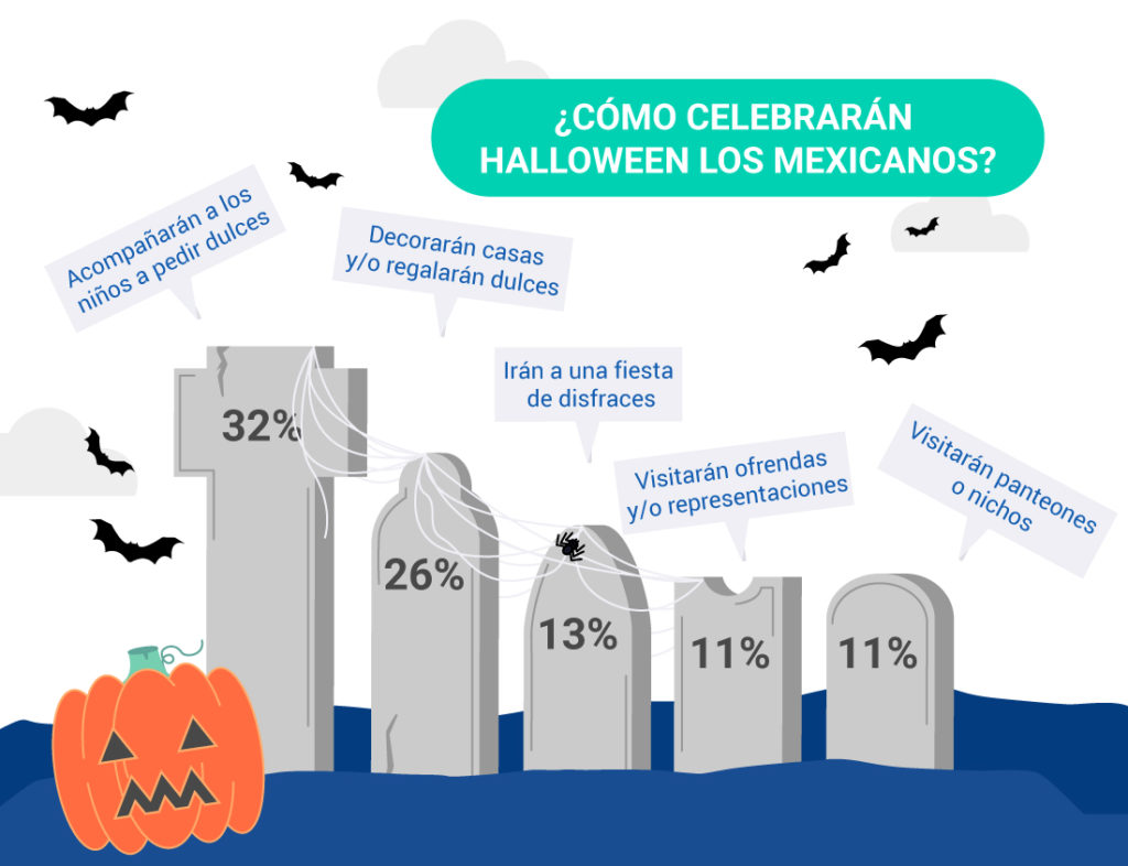 A través del estudio realizado por Ofertia se dio a conocer que casi la mitad de los mexicanos (47%) celebró Halloween, algunos lo hicieron acompañando a los más pequeños de casa para pedir dulces (32%), otros decorando su hogar casa y/o regalando dulces a niños (26%), también hay anduvieron en fiestas de disfraces (13%), algunos visitaron panteones o nichos (11%) o las mega ofrendas y representaciones del Día de Muertos (11%) que se instalaron a lo largo de todo el país.