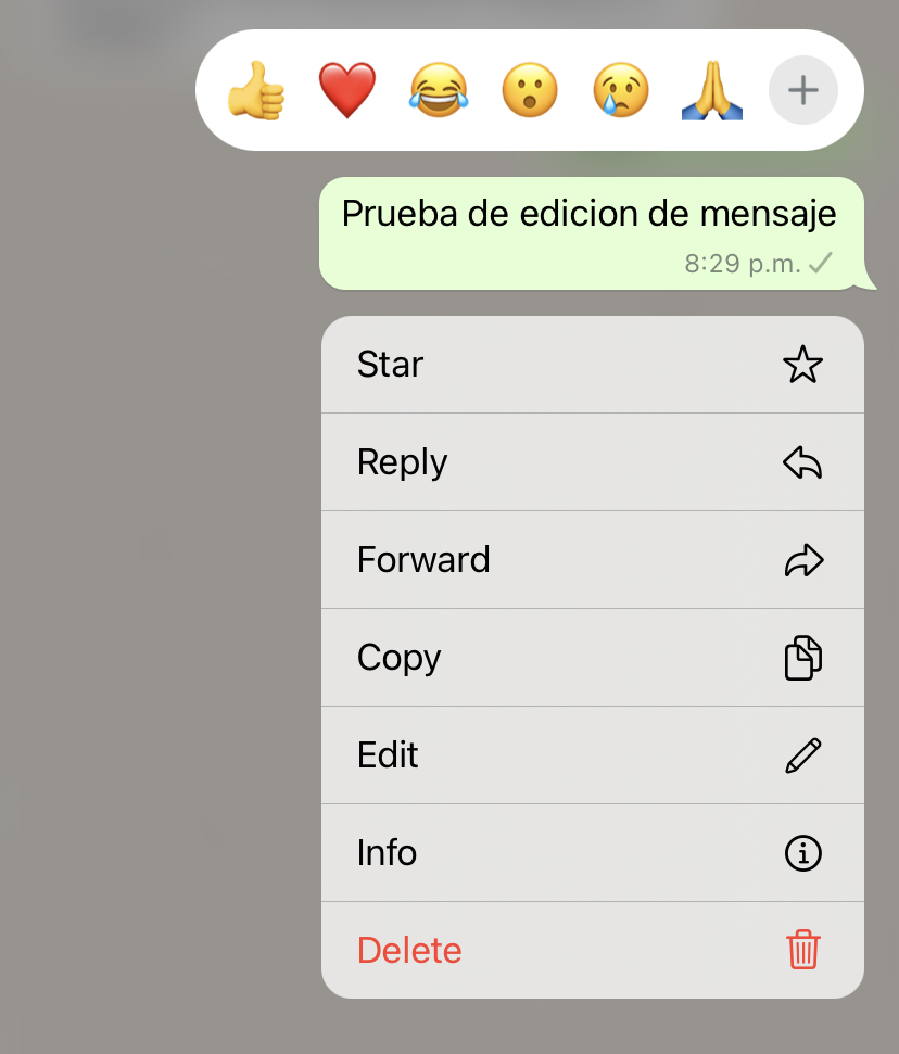 En este mismo menú que se despliega ahora verás un nuevo menú llamado editar. Al elegir esta opción, te mostrará el mensaje con la posibilidad de editarlo.