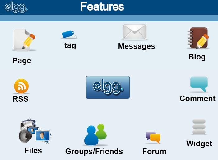 Elgg es una interesante plataforma de Servicios de red social de código abierto que ofrece Blogueo, trabajo en red, comunidad, recolección de noticias vías feeds e intercambio de archivos.