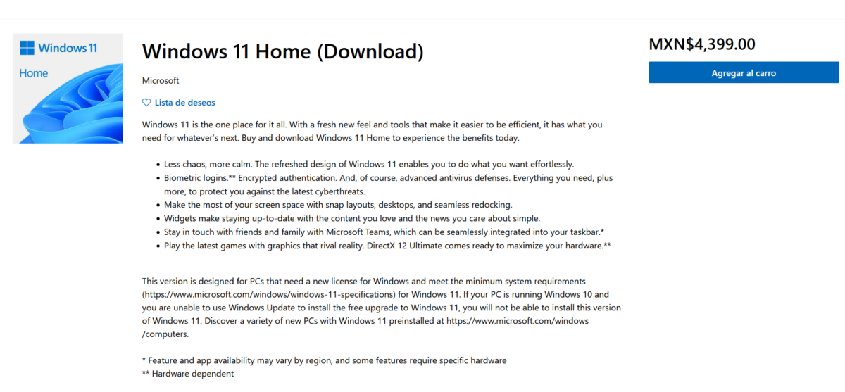 Sin embargo, si lo que buscas es comprar Windows para tener siempre actualizado tu sistema operativo es importante mencionar que siempre el mejor lugar para comprar tu licencia es el portal de la Microsoft Store, donde por 4,399 pesos podrás hacerte de una licencia de Windows 11 Home y 6,399 pesos de una licencia Windows 11 Pro.