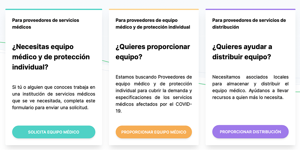 Dentro de la página puedes realizar aportaciones y también solicitar el equipo, solo será necesario que llenes algunos formatos de solicitud, para evitar cualquier tipo de abuso con el equipo que se pone a disposición. También se necesitan asociados locales que puedan almacenar y ayudar a distribuir el equipo médico y llevarlos a quienes más lo necesitan.