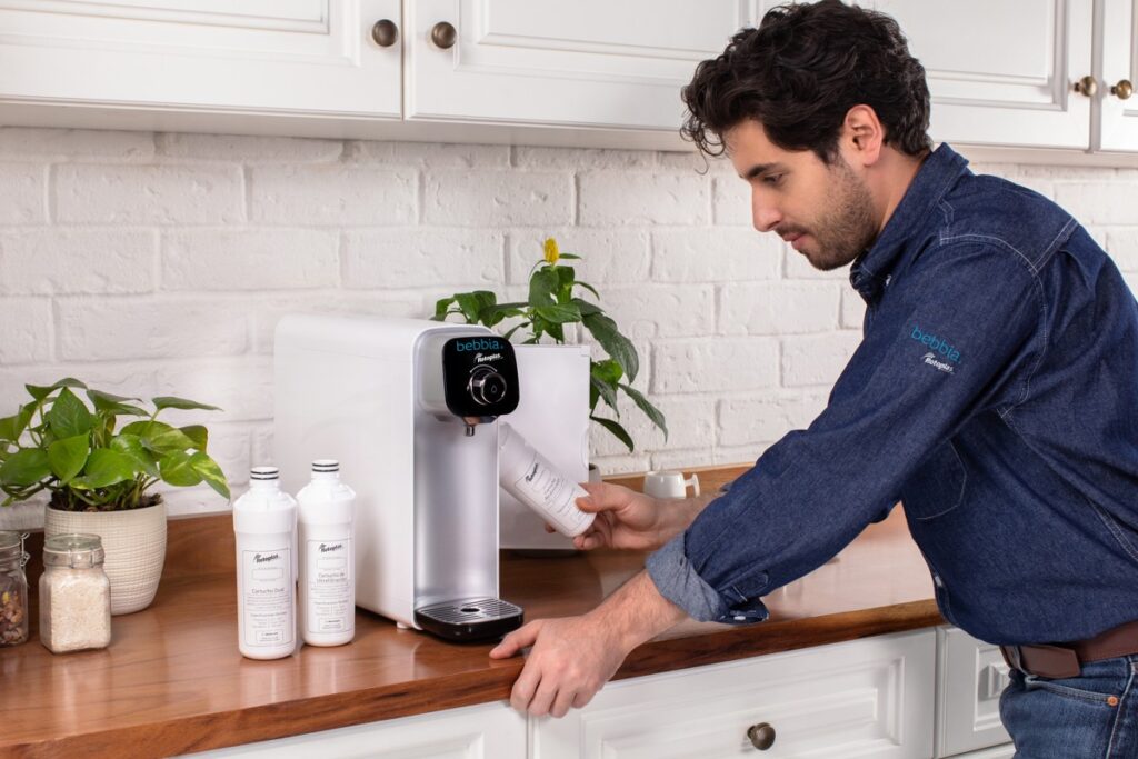 Los purificadores bebbia se instalan en el lavabo de la cocina, para tener agua pura lista para usar. Además de la eliminación del plástico de los garrafones, ya no se requieren cargar a casa, esperar al distribuidor o esperar a alguien que ayude a voltearlo en el dispensador de agua. Es importante notar que el costo de la suscripción más económica de bebbia es menor al costo de dos garrafones semanales.