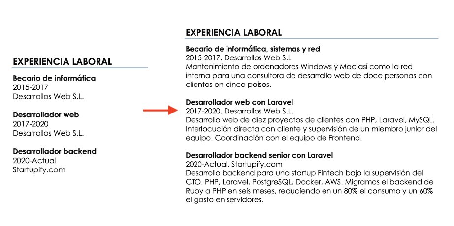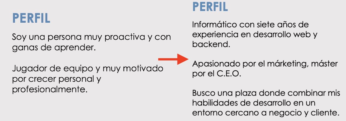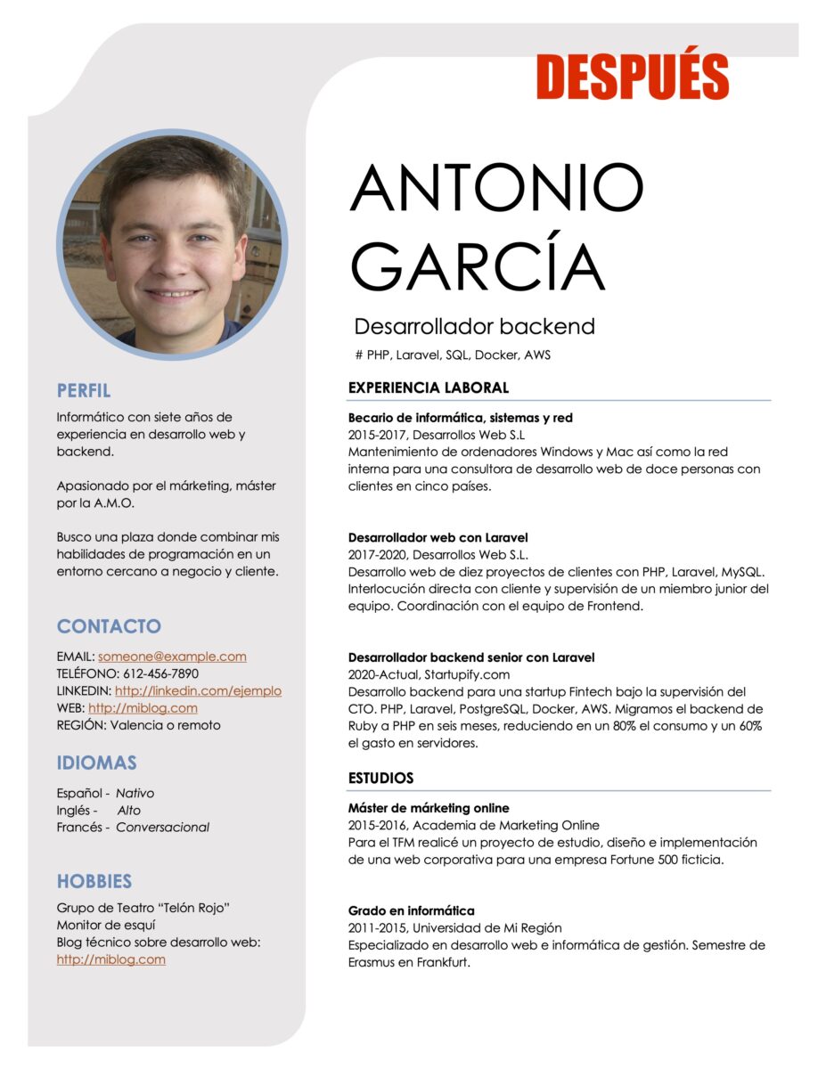 Para finalizar, nos muestran un CV de cómo se vería un curriculum optimizado.