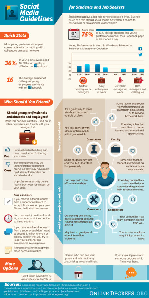 La infografía fue elaborada por Online Degrees da algunos consejos sobre cómo actuar y de qué manera gestionar las redes sociales para sacarles el mayor provecho, profesionalmente hablando.