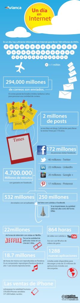 Sabias que al día se suben 50 millones de fotos a Facebook, 864,000 horas de video a YouTube, se crean 1288 nuevas aplicaciones para descargar son sólo algunos ejemplos, mejor checa tú mismo la imagen y sorpréndete.