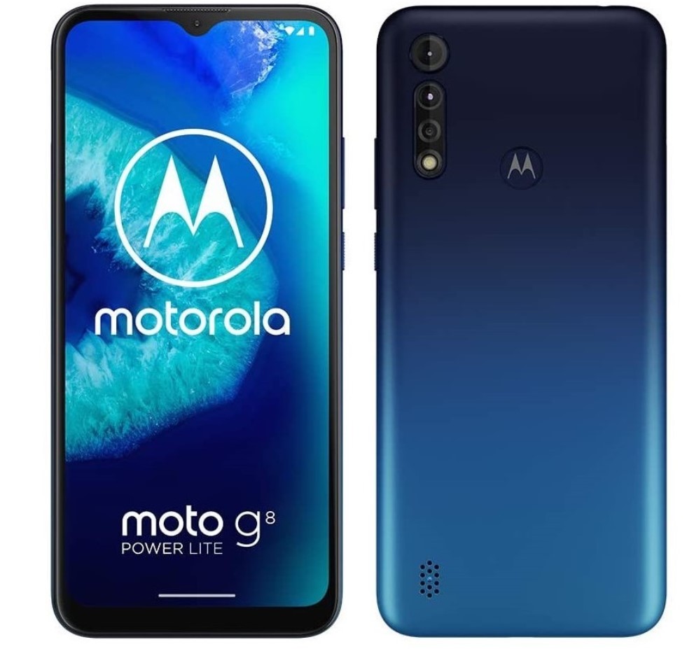 Moto G8 Power Lite – 3,999 pesos. Disponible en color Mora azul y Turquesa