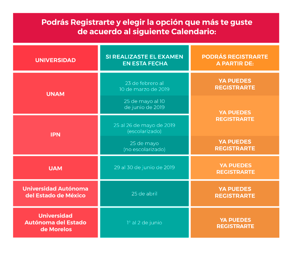 Como lo mencionábamos, para ser candidato de ingreso a alguna universidad bajo el programa que ha creado la SEP, es importante que en este año (2019) hayas realizado el examen de admisión a la UNAM, UAM, IPN, UAEMex y UAEM.