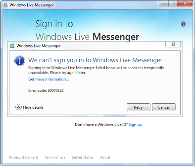 Tienes problemas para iniciar sesión en Windows Live Messenger y te muestra el siguiente código de Error: 80070422.