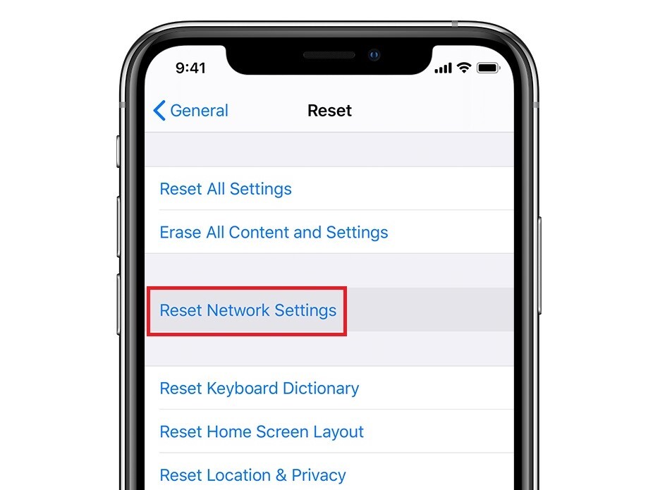 1- Dirigirse a la aplicación de Configuración > General > Restablecer > Restablecer configuración de red