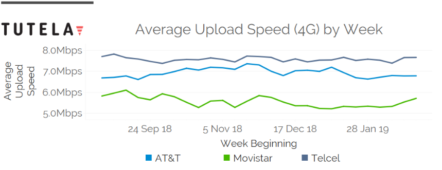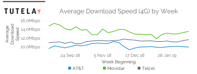 Encontrando que Movistar tiene la mejor velocidad de descarga en una conexión 4G; mientras que AT&T fue la mejor en una red de tercera generación. Sin embargo, el que Movistar sea catalogado como el mejor operador en 4G no es tan significativo, ya que la diferencia entre el primer y segundo puesto en velocidades 4G fue de apenas 3.1 Mbps.