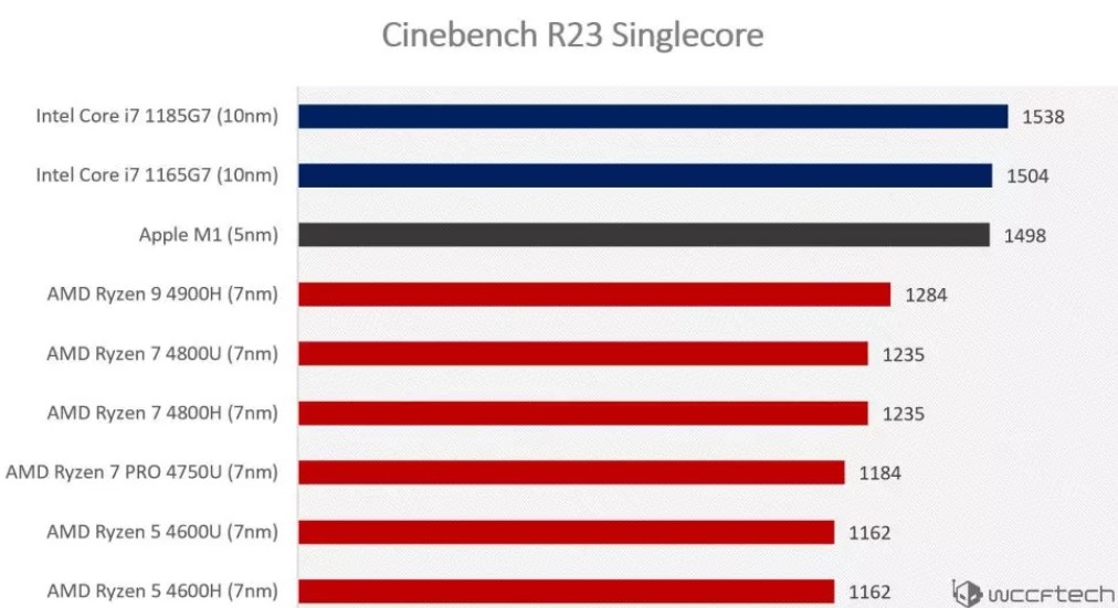 si bien, podemos dejar para otro momento qué procesador es más o menos poderoso, en rendimiento a nivel general el M1 de Apple se pone al tu por tu con los Intel Core i7 de 10a generación y con los AMD Rizen 7 y 9.