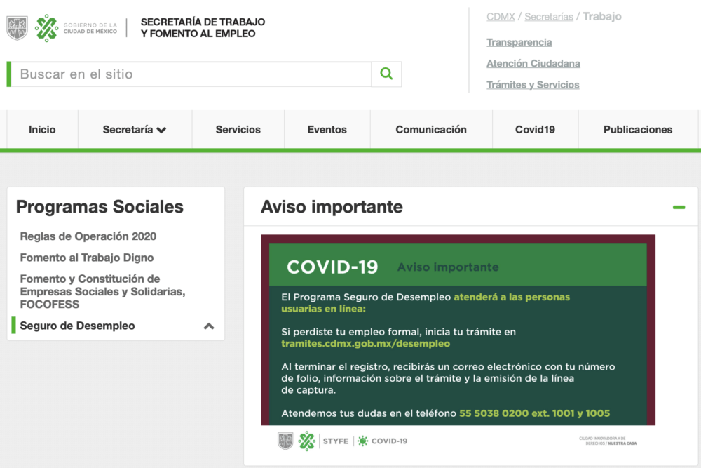 Paso 1: Tu registro para el Seguro de desempleo tendrás que realizarlo en línea en la página oficial de la Secretaría de Trabajo y Fomento al Empleo.