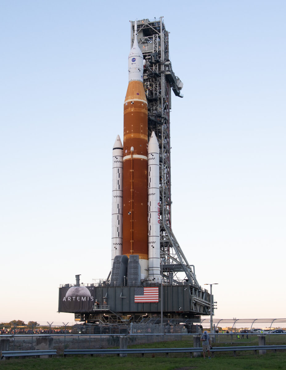 Se refiere al sistema de lanzamiento espacial de la NASA. Se prevé que lleguen astronautas en esta nave para el año 2024, es el único que actualmente tiene el peso y la potencia para llegar.